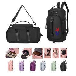 Bring along your cleats or other athletic shoes, or keep wet clothes separate in this gym duffel with wet/dry compartments. Made of water resistant Oxford fabric, these 17.72" x 9.84" x 9.84" bags have a roomy interior with a multi-layer pocket design, a separate space for wet clothes and shoes, zipper closure and carrying handles. Available in assorted colors. Add your school, sports team, organizational or company logo or message to customize. Orders of 300 pieces or greater are eligible for sea shipping.