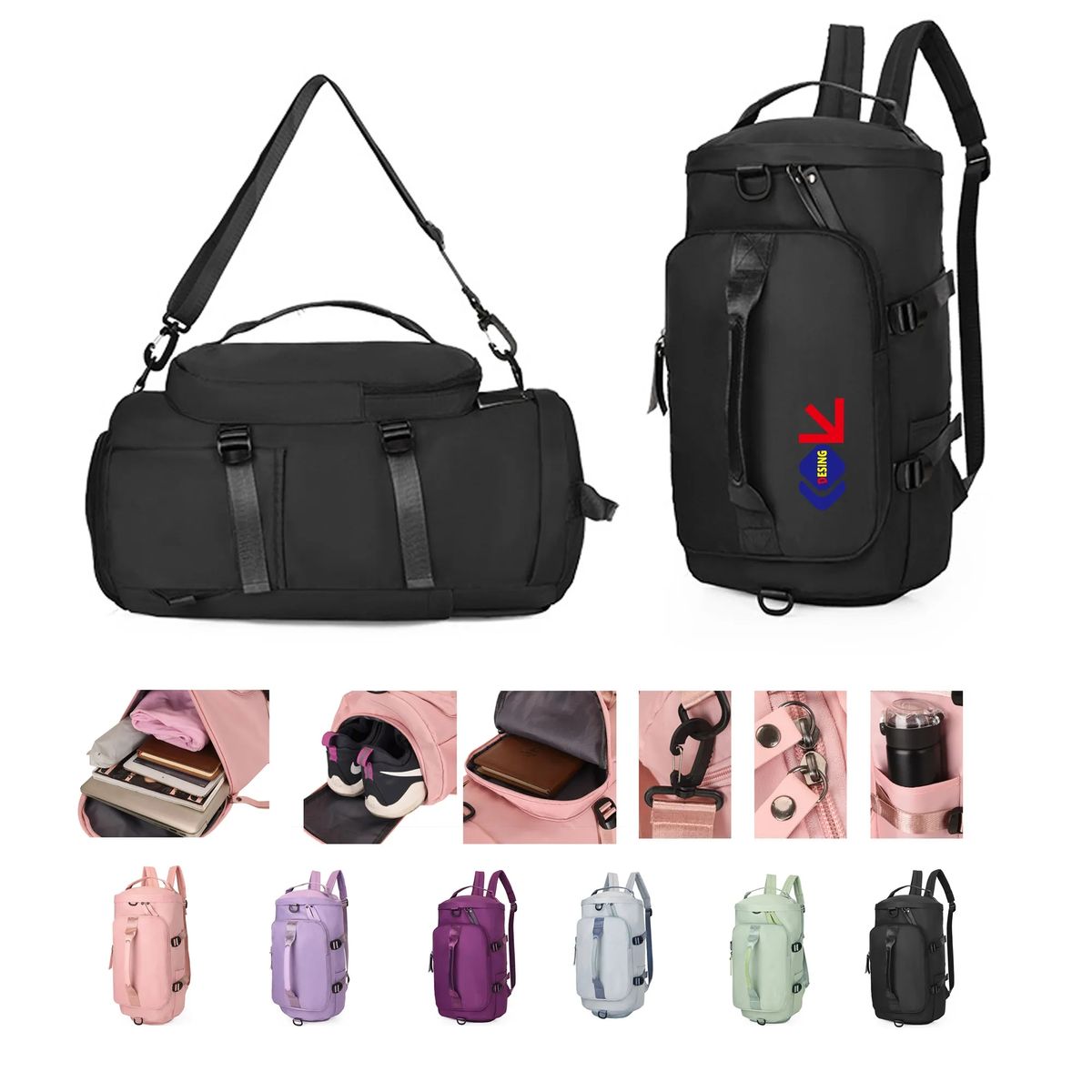 Additional Information17.72" x 9.84" x 9.84" water resistant polyester handled gym duffel bag with we/dry compartments